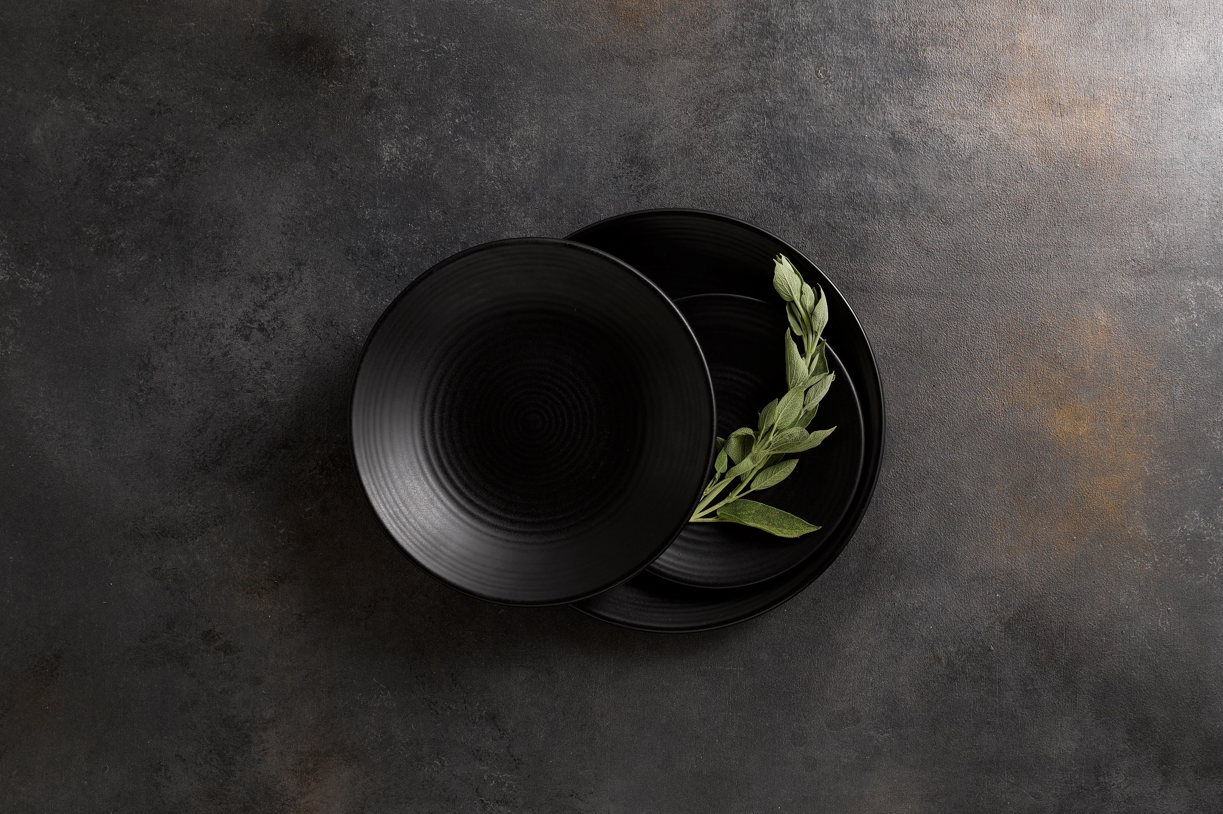 - Unik glasur og tekstur: Fuldglasering med hånddyppet, reaktiv sort glasur, der giver variation og et personligt præg til hver tallerken.