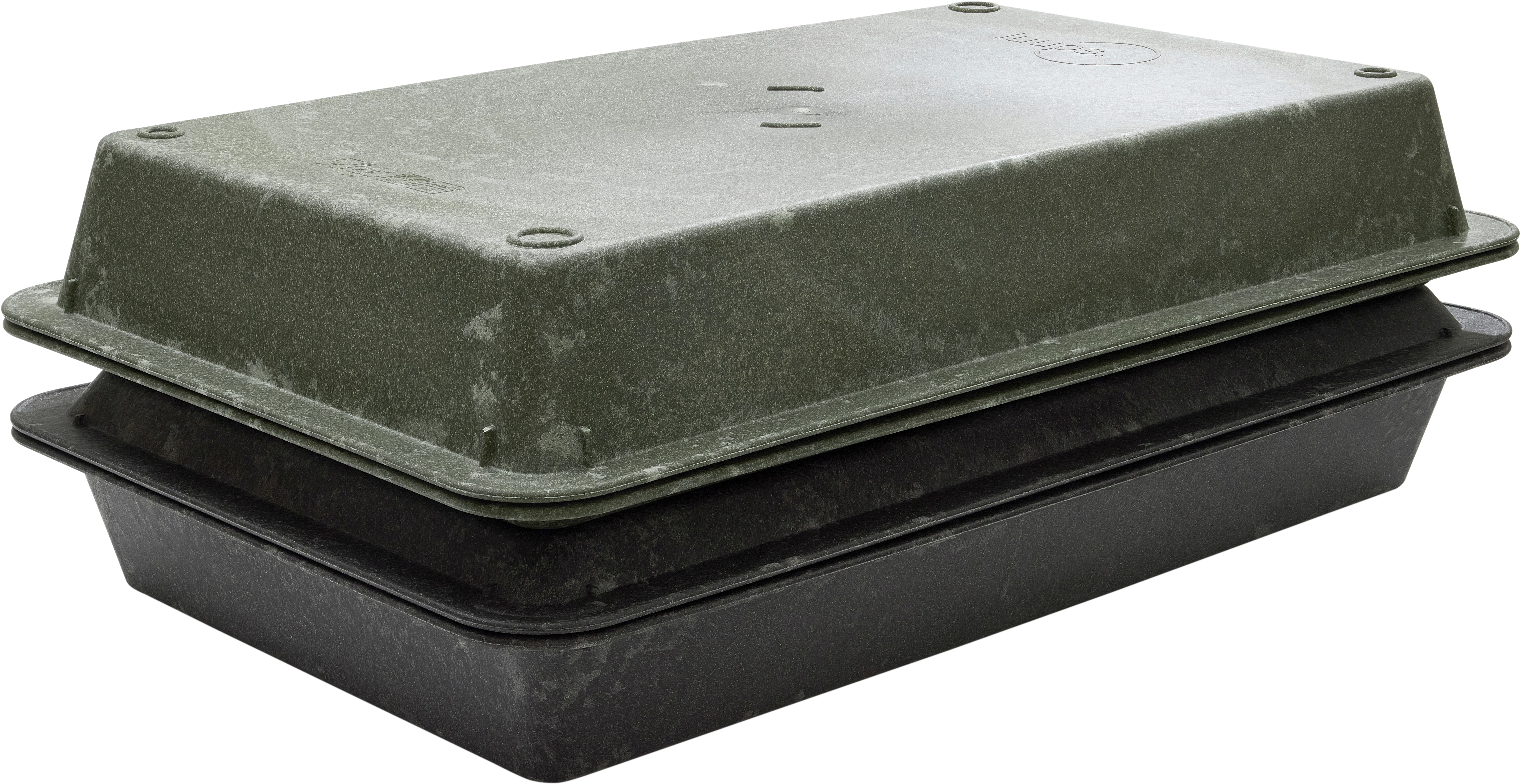 - Letvægtskonstruktion og stabelbarhed: Fadet er let at håndtere og kan stables med klikfunktion – både med og uden låg. Det lave fad kan bruges som låg eller bakke.