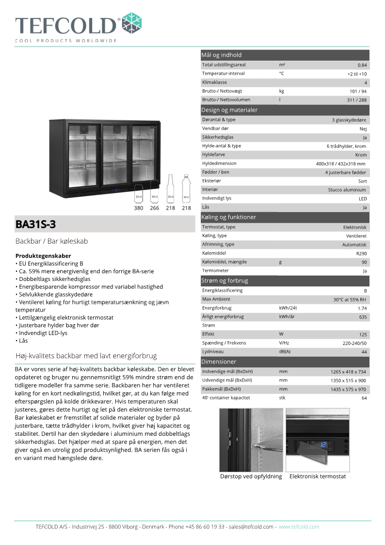 Temperaturinterval: +2 til +10°C, ventileret køl.