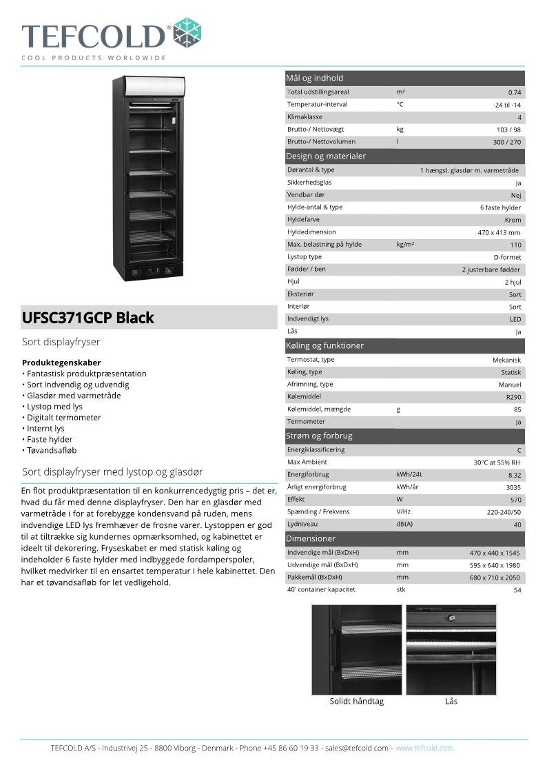 Temperaturinterval: -24 til -14°C, statisk køl.