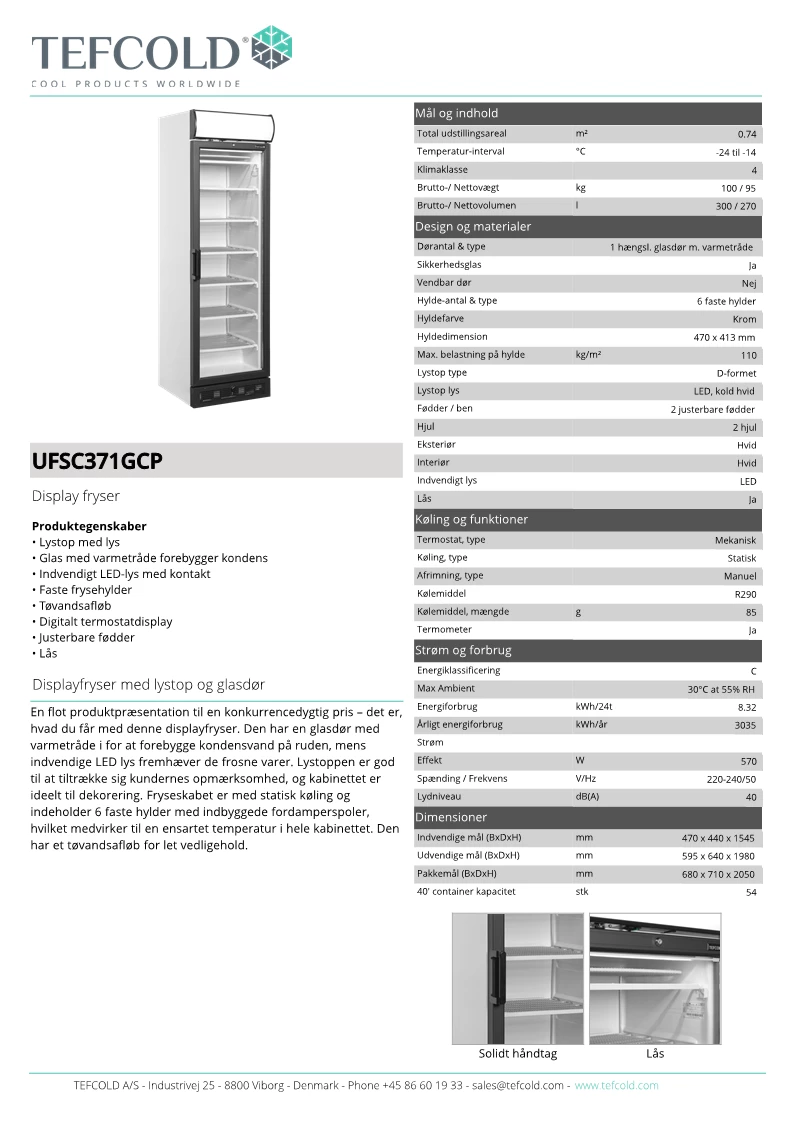 Temperaturinterval: -24 til -14°C, statisk køl.