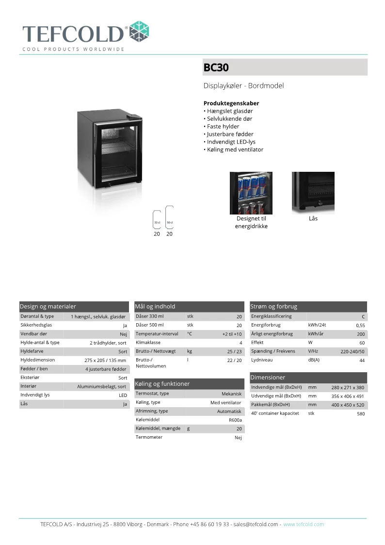 LED-lys indvendigt, Temperaturinterval: 2 til 10 °C, ventileret køl,