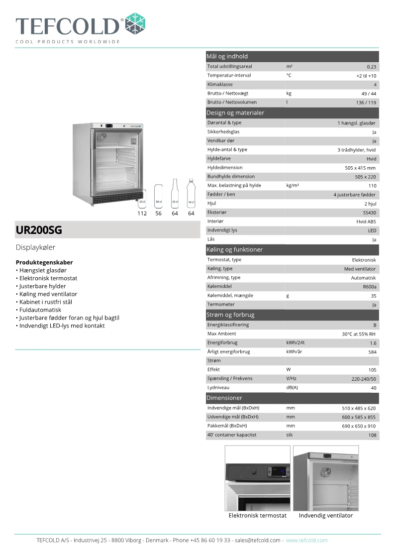 Tefcold UR200SG displaykøleskab