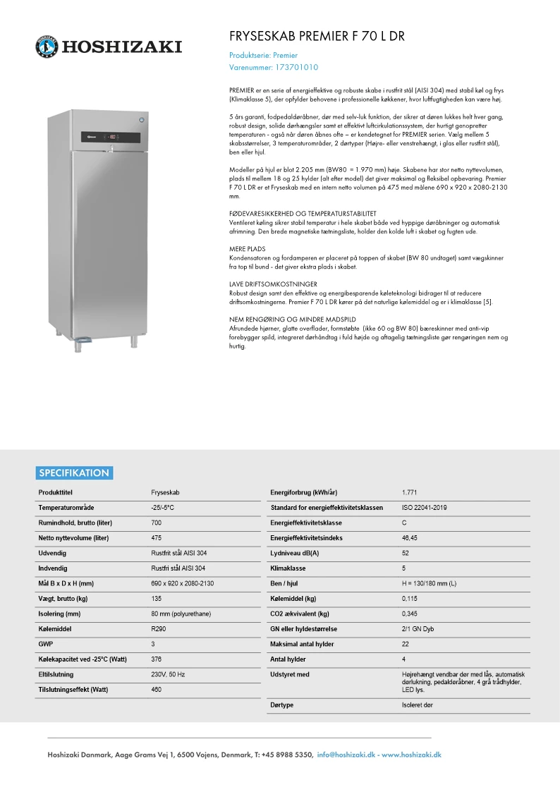 Rustfri stål. Højrehængt vendbar dør. Fodpedal-døråbner. Lås. 4 plastbelagte trådhylder 2/1 GN.