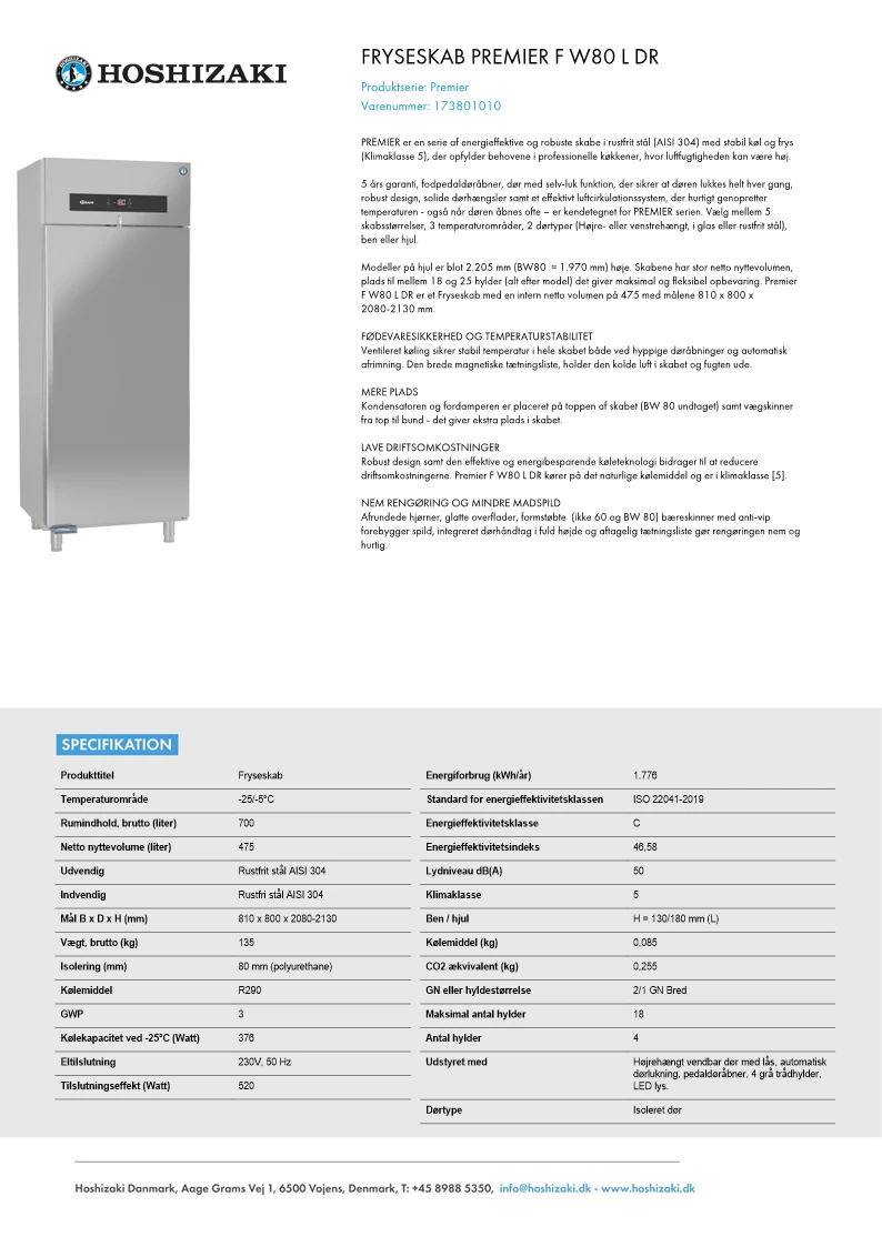 Hoshizaki Premier FW80 L DR fryseskab