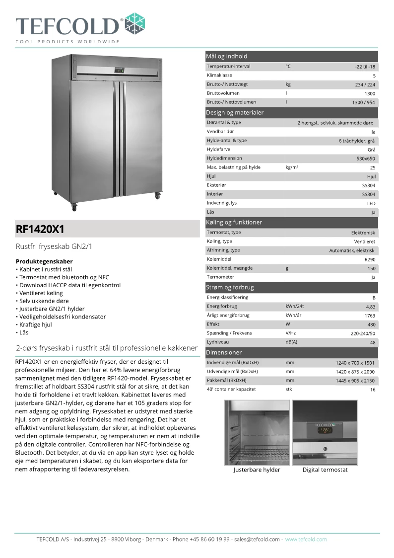 Temperaturområde: -22 til -18°C, ventileret køl.
