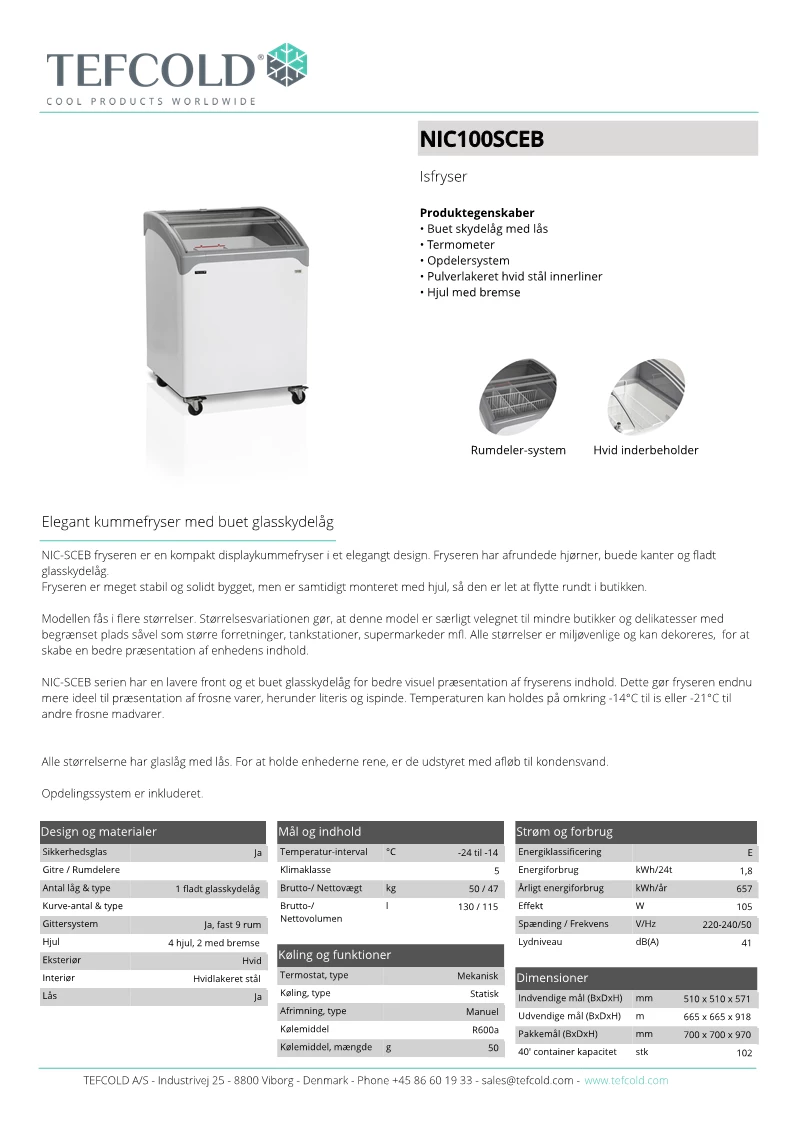 Temperaturinterval: -24 til -14 °C, statisk køl.
