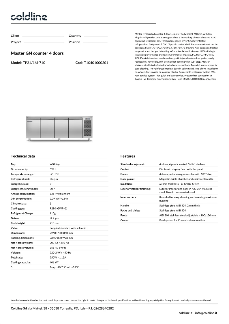 4 køleskabe med hver 1x1/1 GN trådhylder.