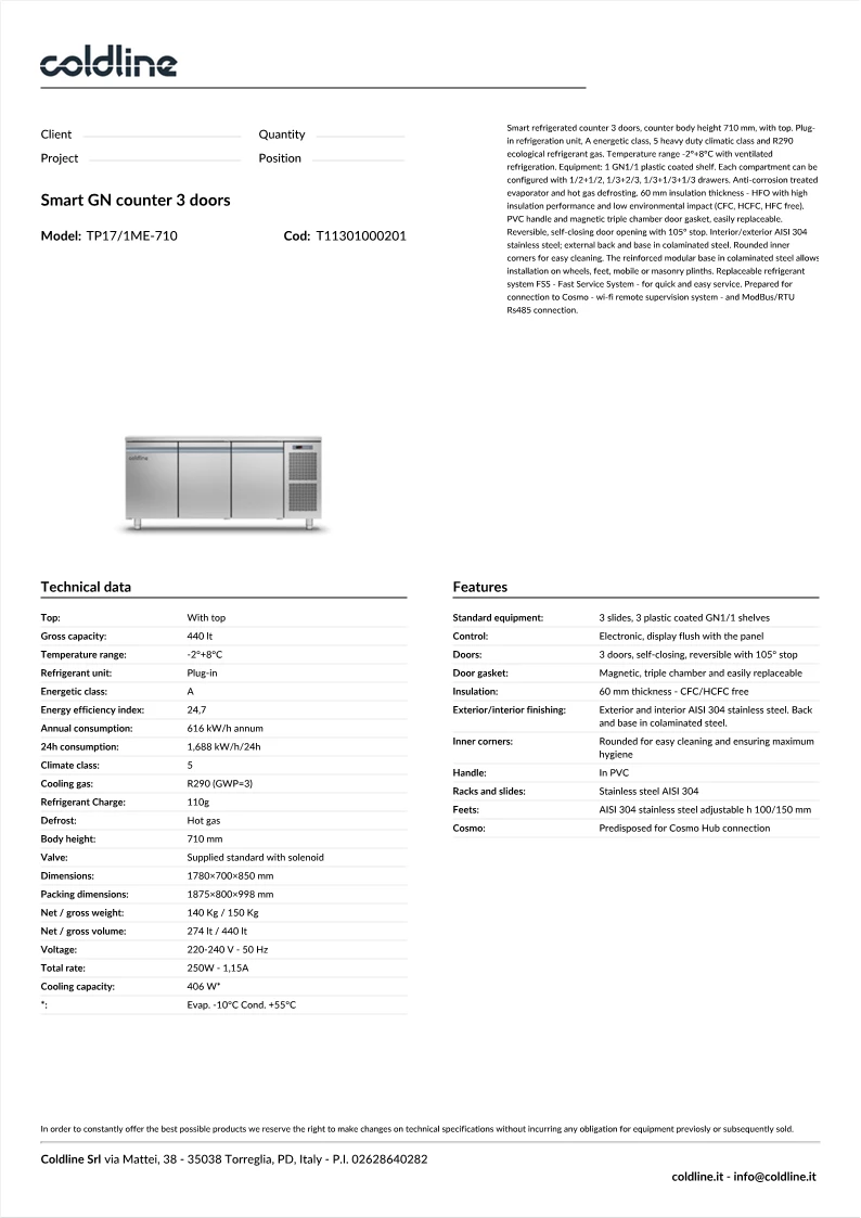 3 køleskabe hver med 1x1/1 GN trådhylder.