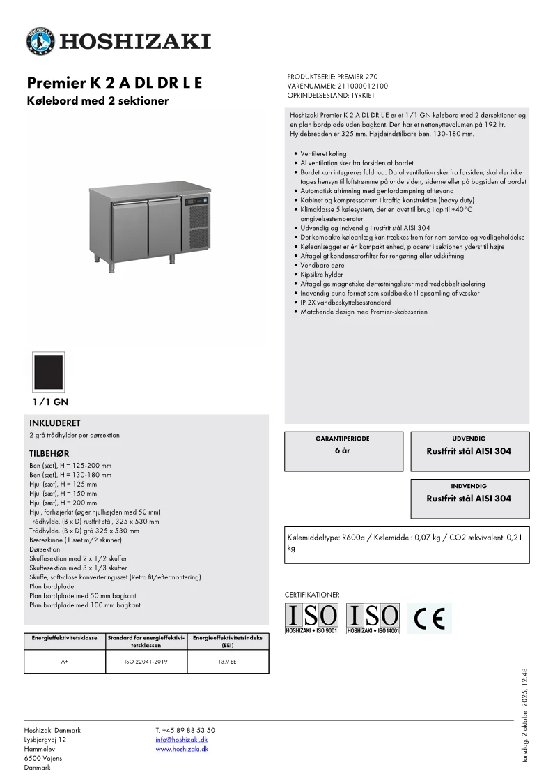 2 køleskabe hver med 2x1/1 GN trådhylder.