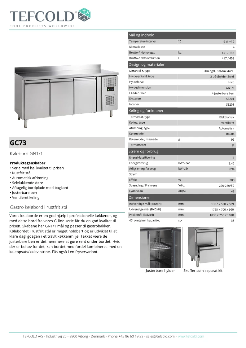Tefcold GC73 SS201 kølebord