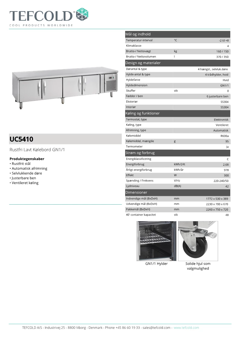 Snack-kølebord udført i rustfrit stål, udvendigt og indvendigt.