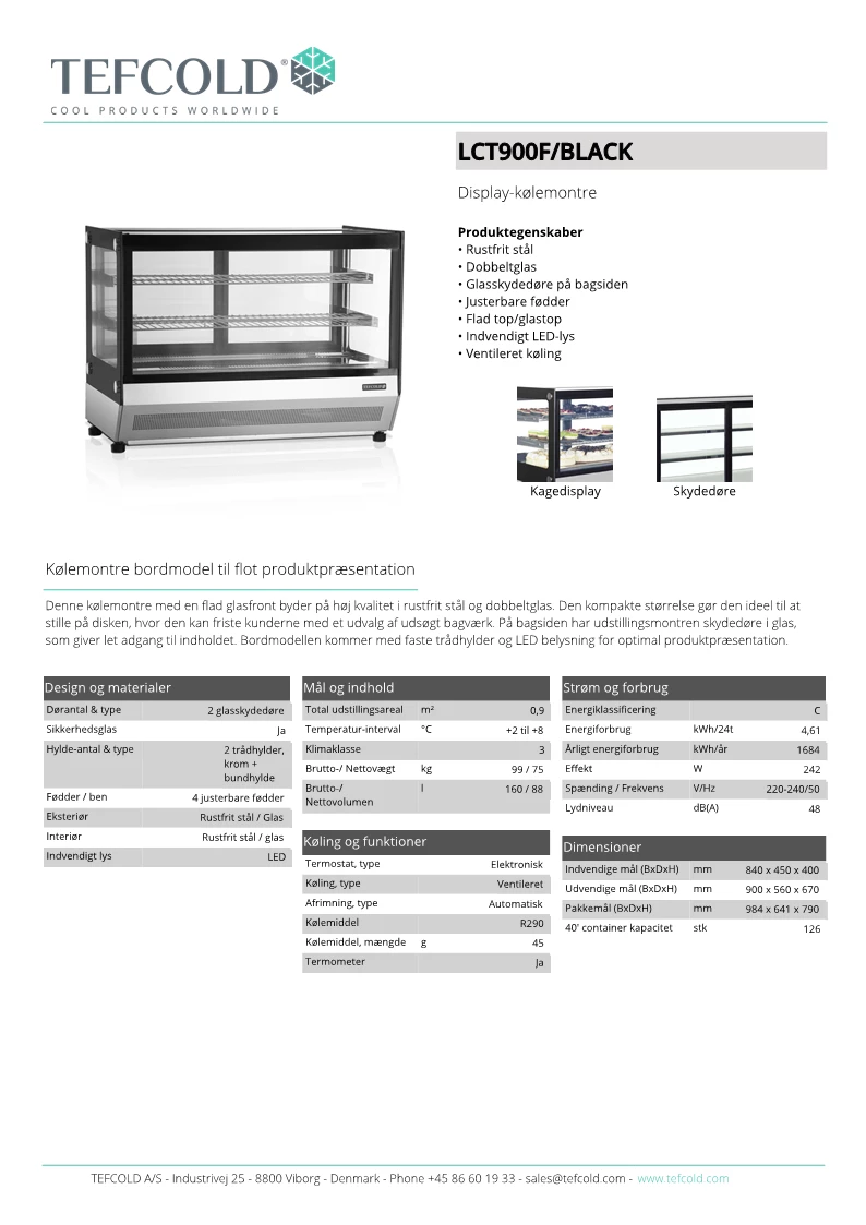 Bruttovolumen: 160 ltr, Rustfrit stål udvendigt, rustfri stål indvendigt / sort glas, LED-lys indvendigt, Temperaturinterval: 2 til 8°C, ventileret køl. 4 justerbare fødder, 2 glas skydedøre på bagsiden, 2 trådhylder - krom + bundhylde Spænding/Frekvens: 220-240/50 V/Hz, 242 Watt, Energiklasse: C Energiforbrug: 4,61 kWh/24/timer, BxDxH: 900 x 560 x 670 mm