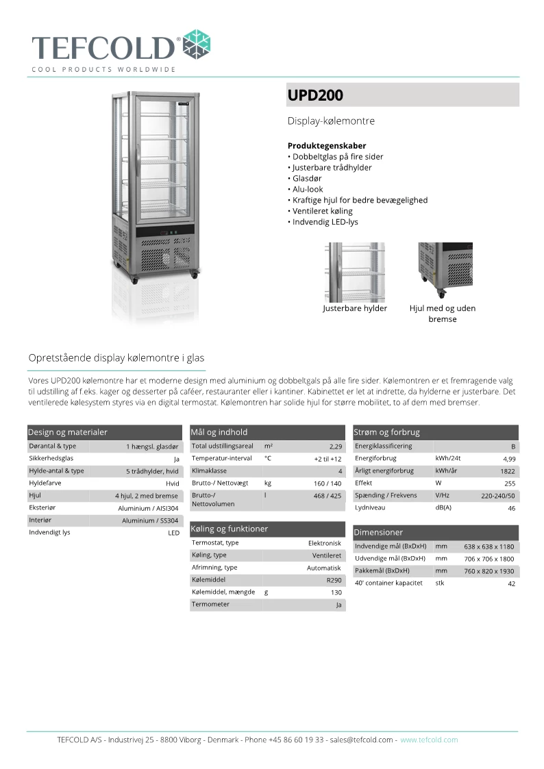 Energiforbrug: 4,99 kWh/24/timer, BxDxH: 706 x 706 x 1800 mm