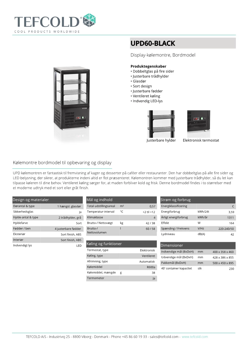 Bruttovolumen: 60 ltr, sort finish, ABS, sort ABS indvendigt.