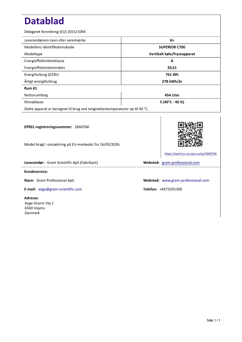 Gram Professional G+ C700 Superior køleskab, venstrehængt