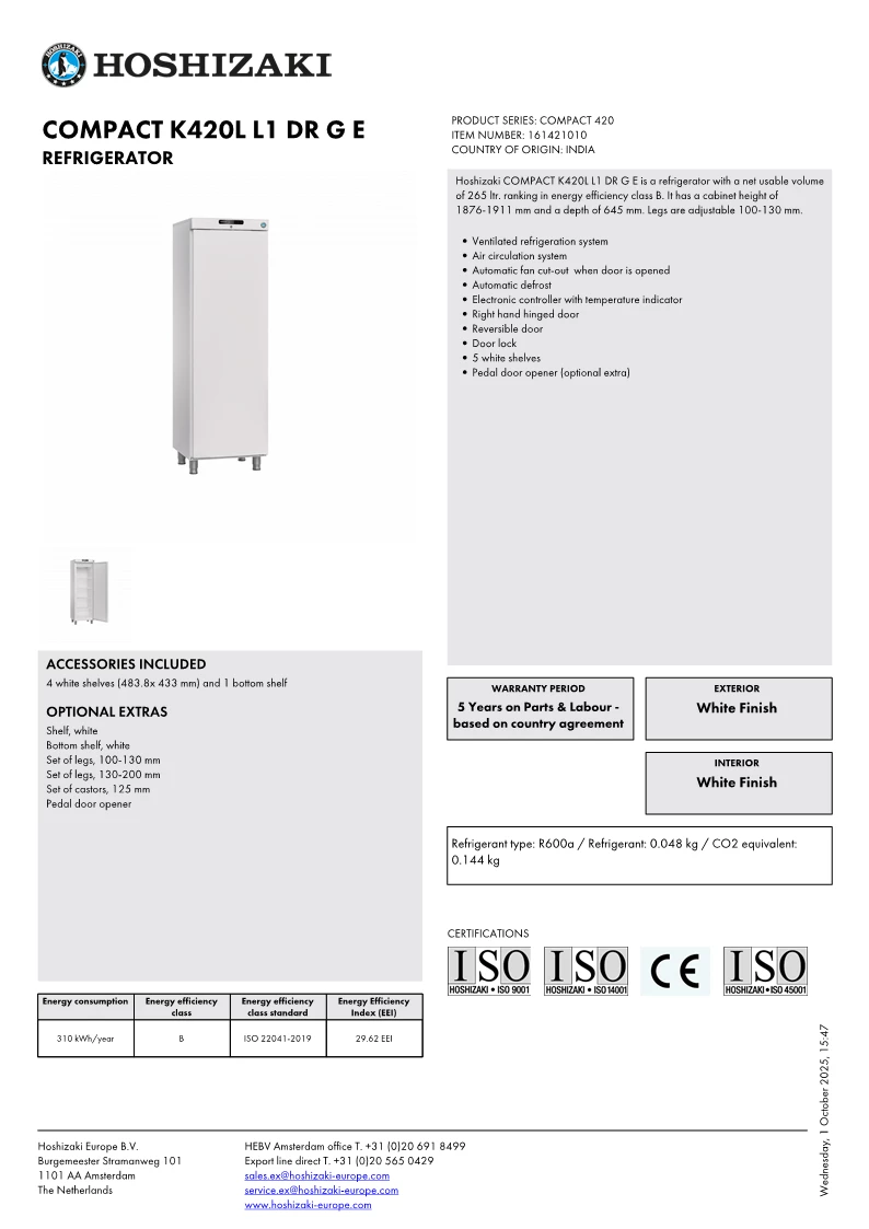 Hoshizaki Compact K420L køleskab