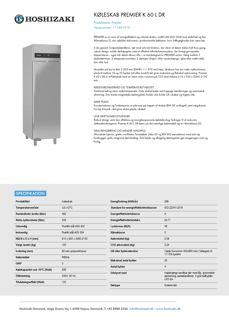 Hoshizaki Premier K60 L DR køleskab