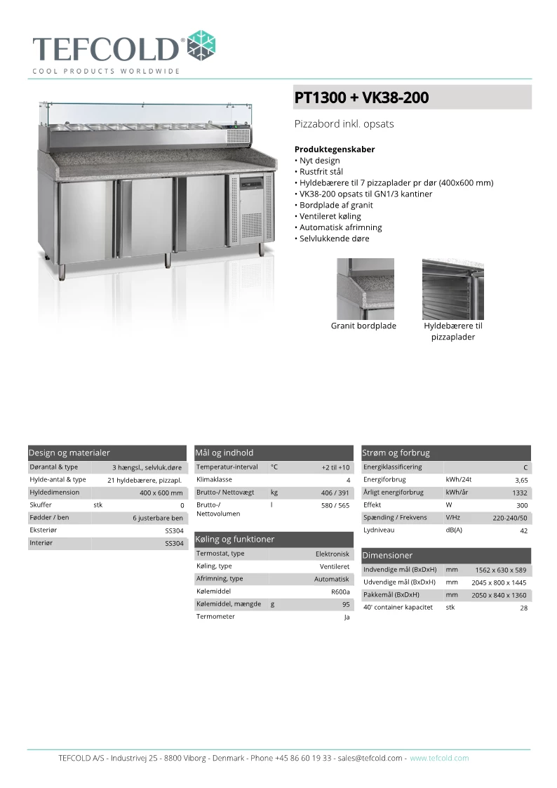 Udført i rustfrit stål. Arbejdsplade i granit.