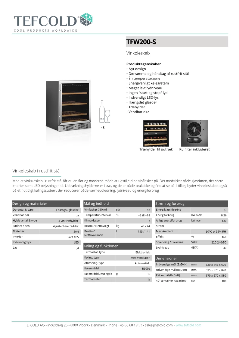 Temperaturinterval: 5 til 18 °C, ventileret køl,