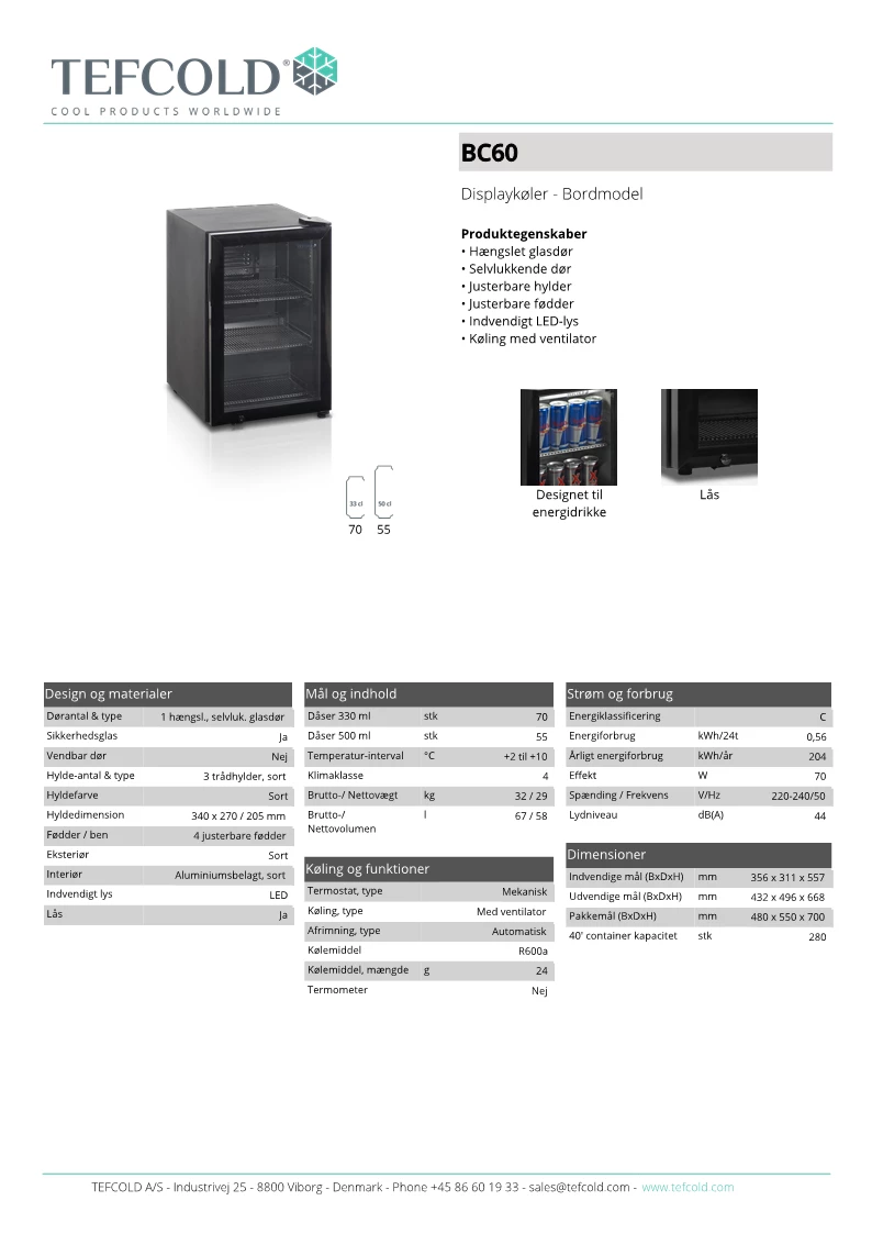 Energiforbrug: 204 kWh/årligt, 0,56 kWh/24t