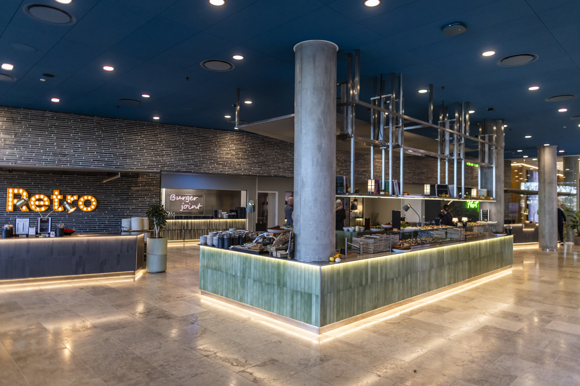 ”Med mere end 1.600 gæster hver dag skal der være noget for enhver smag,” fortæller Vibeke. ”Der er frit valg – fra vegetar til burger og meget derimellem – og flere af boderne har ’stamgæster’. Men der er også rigtig mange, som ugen igennem vælger at variere. For dem – og for det store antal daglige gæster i huset – giver Food Hall-konceptet mange valgmuligheder.”