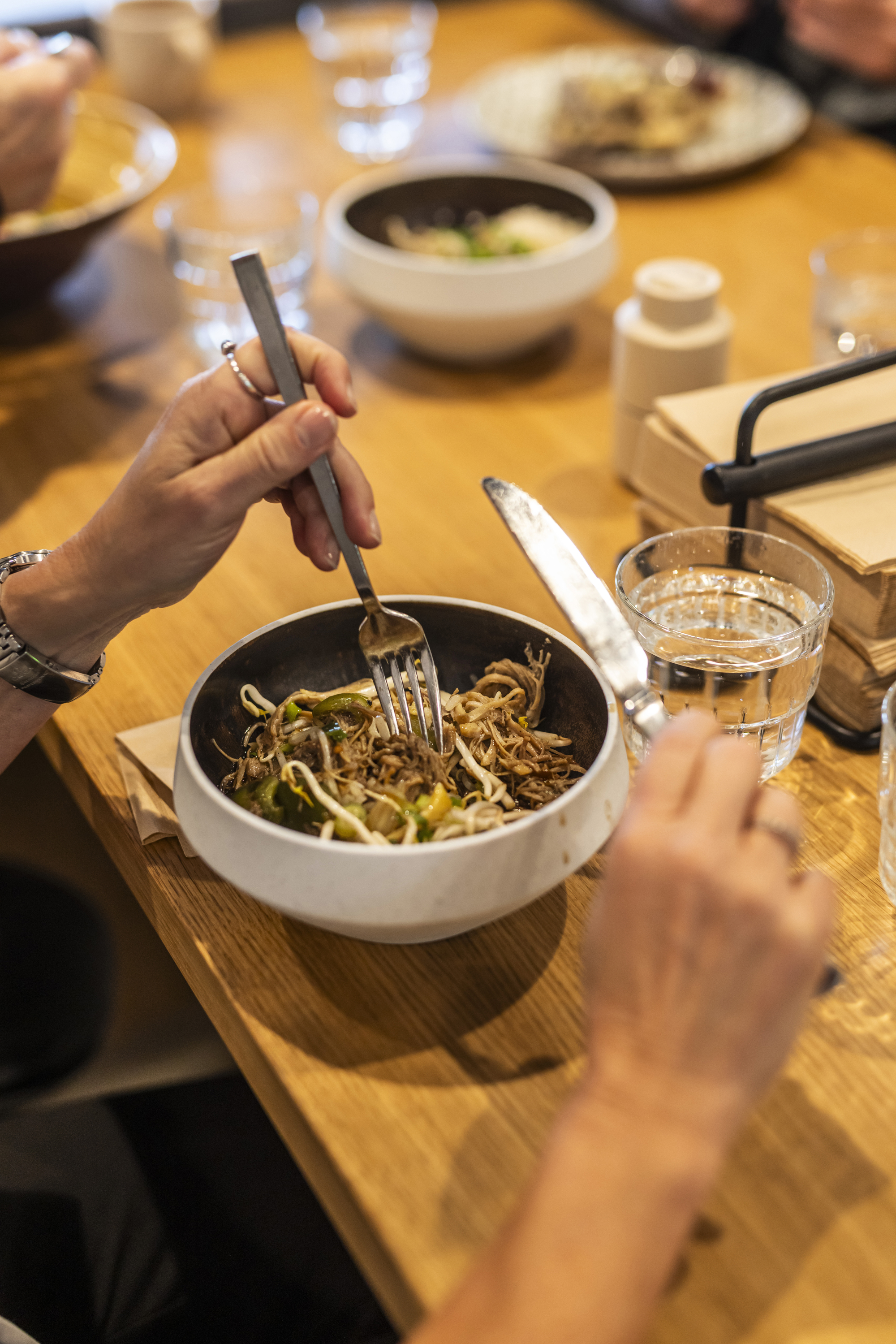 ”Tilbagemeldingerne er, at man mødes på en anderledes social måde. Der er mad nok til alle, men når fadene deles, er der en tendens til, at man ikke tager mere end naboen,” fortæller Vibeke, der også kan konstatere, at medarbejdere fra forskellige afdelinger, som ellers aldrig mødes, taler sammen og husets gæster får en oplevelse.